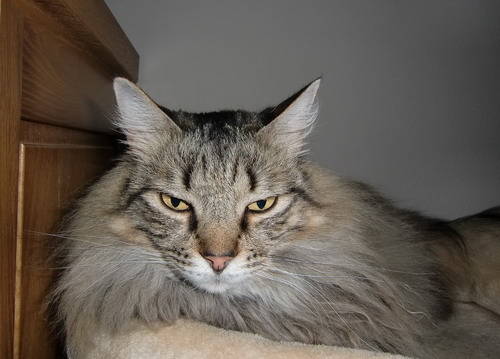 Hij was onze eerste langhaar. Een kruising tussen een maine coon en een siberische kat.